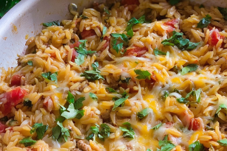 One Pot Cheesy Taco Orzo Skillet